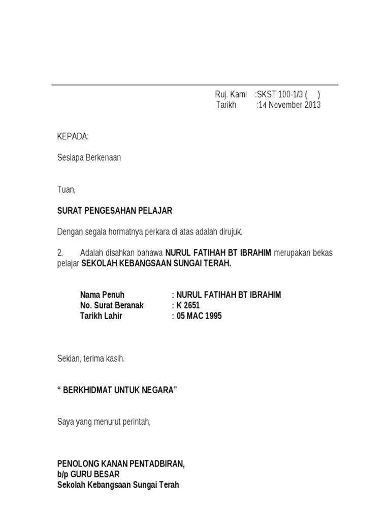 Contoh surat pengesahan murid sekolah. Contoh surat pengesahan murid sekolah menengah.